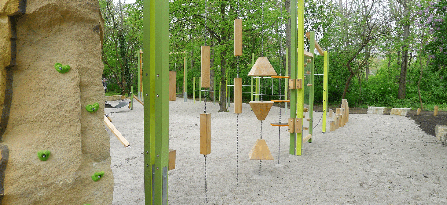 Im Herzstück des Planungsgebiets wird ein bestehender ein Rodelhügel überarbeitet und angrenzend Spielbereiche für verschiedene Altersgruppen angelegt. Tischtennisplatten, eine Riesenschaukel, ein Bolz- und Vollyballplatz geben Bewegungsraum für die 6-12 Jährigen. Unter dem Motto „Tiere in der Stadt“ wurden vielseitige Angebote für die Kleinkinder geplant. Gebaut wird der Bereich vom Auszubildungsprojekt des Bezirksamtes Lichtenberg.
